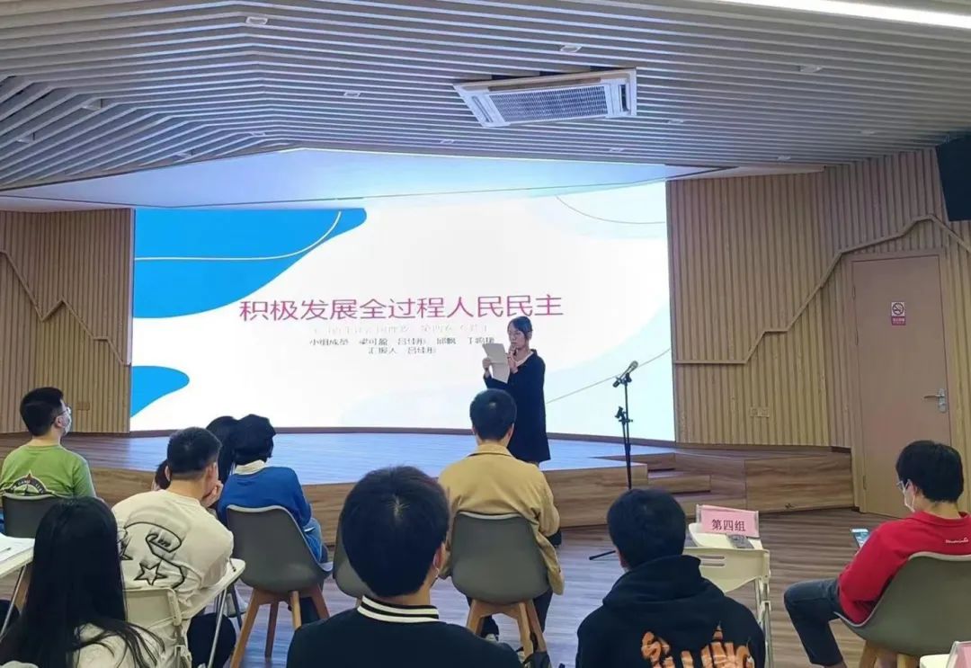 在深入学习党的二十大精神和《习近平谈治国理政》第四卷等重要内容后,各小组组员们结合自身学习生活经历进行了交流,并派出代表上台分享本组的学习心得体会。六组代表分享了对实现中华民族伟大复兴的中国梦、共同富裕要靠勤劳智慧来创造等方面的学习感悟,并联系自身的学习生活经历,围绕新发展理念、疫情防控、生态文明建设、实现共同富裕等热点话题进行交流,引发了全体成员的共鸣与深思。