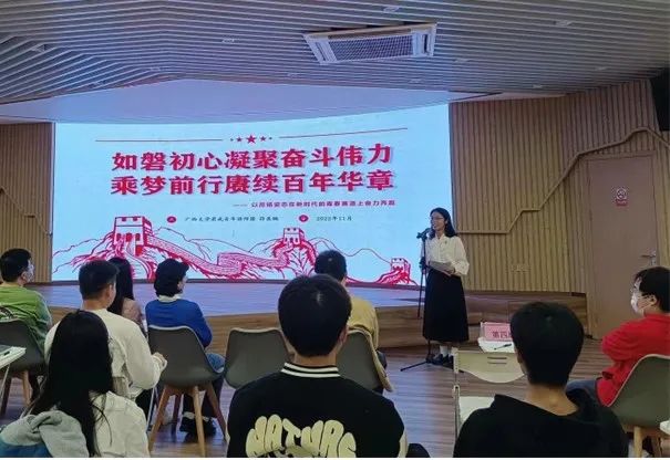 为深入学习贯彻党的二十大精神,引导广大青年学子立志成为有理想、敢担当、能吃苦、肯奋斗的新时代青年,近日,我院研究生先行连在漓江书院讲堂开展“学习党的二十大、永远跟党走、奋进新征程”主题学习活动。本次活动邀请了广西大学“君武青年讲师团”团长符其娴同学进行学习党的二十大精神主题宣讲,我院先行连共六个小组参加本次活动。