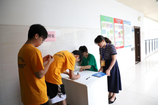 比赛结束,选手交样并核对样品编号及工位号