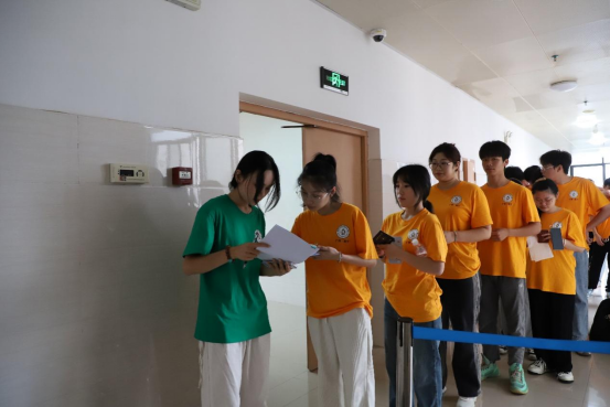 参赛师生适应场地,指导老师为参赛选手讲解注意事项