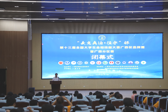 18日晚上8时,召开了闭幕式及颁奖仪式,闭幕式由梁洁老师主持。大赛评审委员会主任梁天权老师点评了参赛选手的整体表现,指出了评审样品出现的几个共性问题,激励广西选手提高制样水平参与国赛。大赛监督委员会主任陈国华老师就比赛过程中出现的质疑进行了解释,为完善将来的区赛提出建议。广西大学资源环境与材料学院党委书记沈大强宣布获奖名单。广西大学教师教学发展中心专职副主任胡立坤致闭幕词。