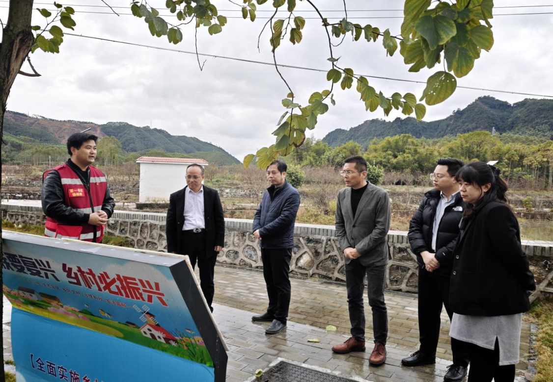 调研中,沈大强一行深入乡村田野、产业现场,实地了解选调生的工作实况与成长环境。24日到达融安县大良镇古兰村里居屯,调研组考察了该村作为“全国特色村”在人居环境整治方面的典型案例,重点调研了农村生活污水治理的实践模式,并看望了在此服务的选调生校友,详细了解其工作生活情况,听取基层对学校人才培养的意见建议。