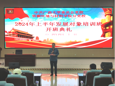 为切实加强党员培养教育工作,不断提升党员发展对象培养质量,提高青年学子党性修养和政治素质,4月21日晚,我院在学院123报告厅举行2024年上半年发展对象培训班开班典礼。学院党委副书记、纪委书记吴达慧,培训班班主任范剑辉,发展对象培训班全体学员参加开班活动。
